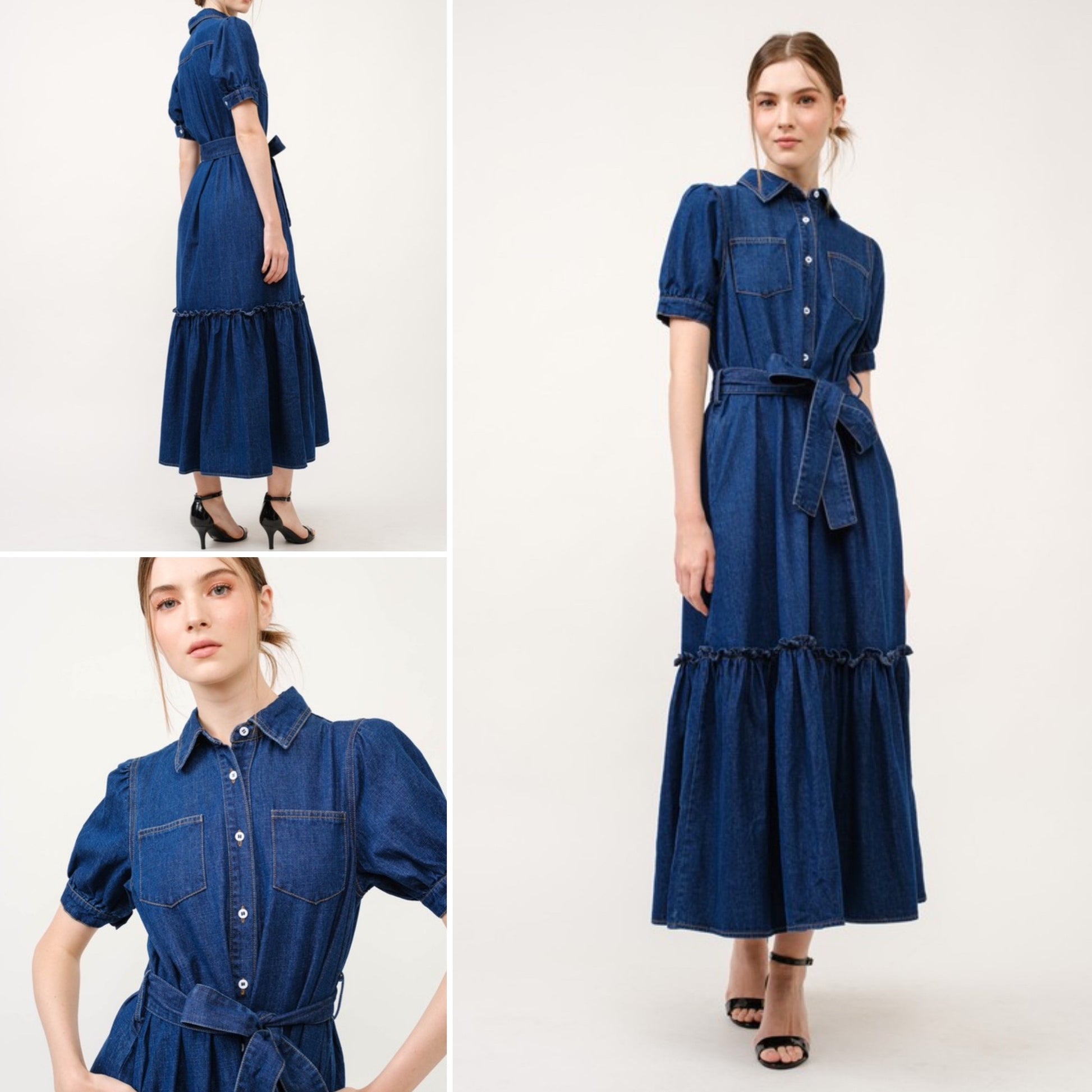 Beautiful denim dress with belt and pocket.